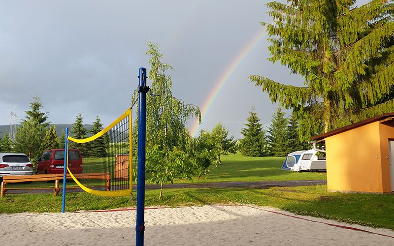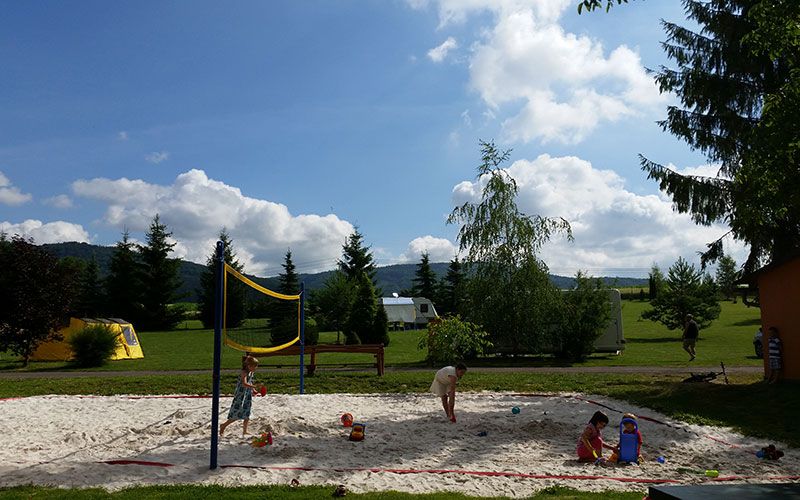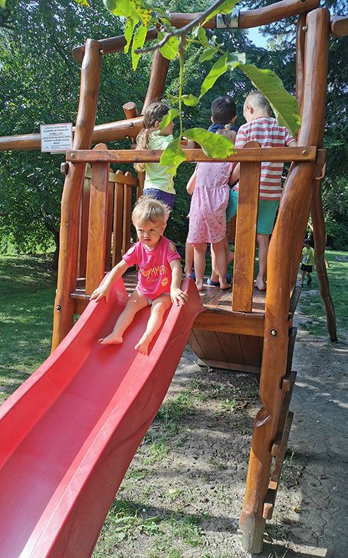 Spousta vyžití přímo v areálu: hřiště, prolézačky, hry.