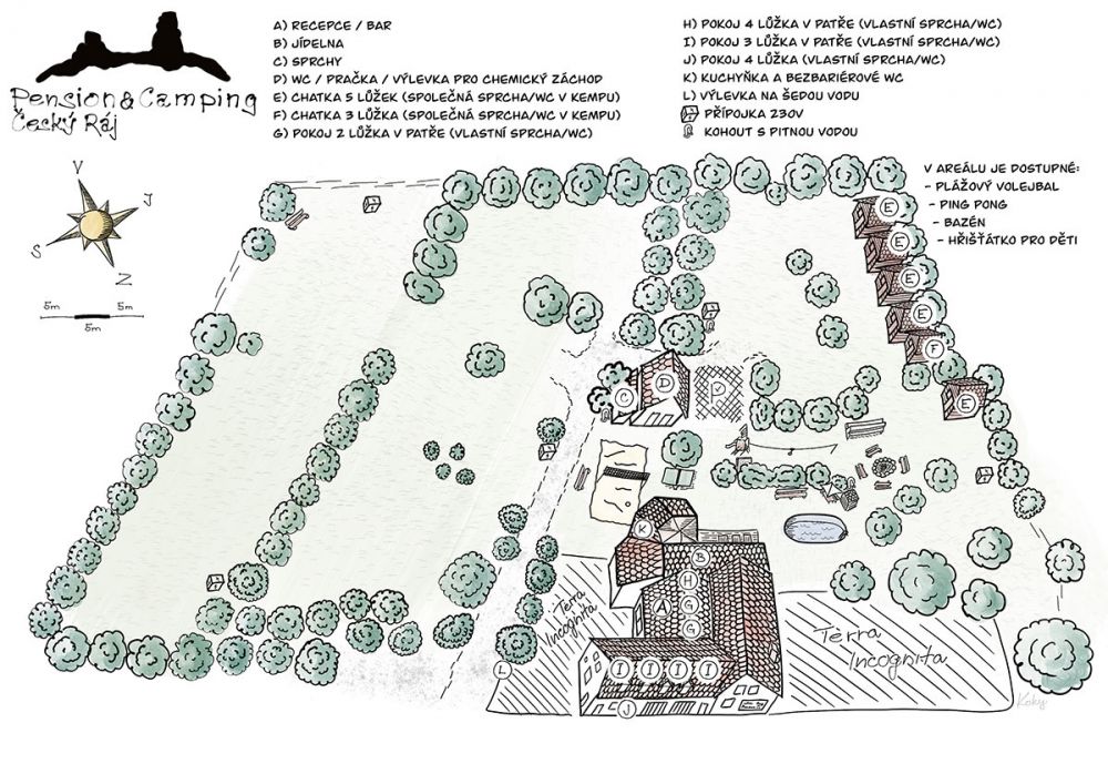 Náš kemp je situovaný uprostřed Českého Ráje. V okolí kempu je spousty krásných rybníků, pískovcových skal a starých hradů.